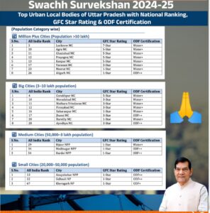 लखनऊ, आगरा, नोएडा, गोरखपुर, वाराणसी समेत कई शहरों की रैंकिंग में अभूतपूर्व सुधार