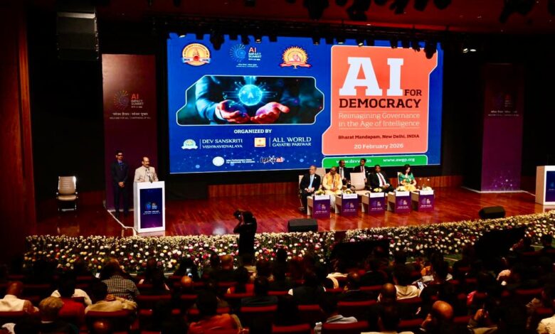 भारत मंडपम, नई दिल्ली में आयोजित इंडिया एआई इम्पैक्ट समिट के ‘एआई फॉर डेमोक्रेसी’ विशेष सत्र को लोकसभा अध्यक्ष ओम बिरला ने संबोधित किया।